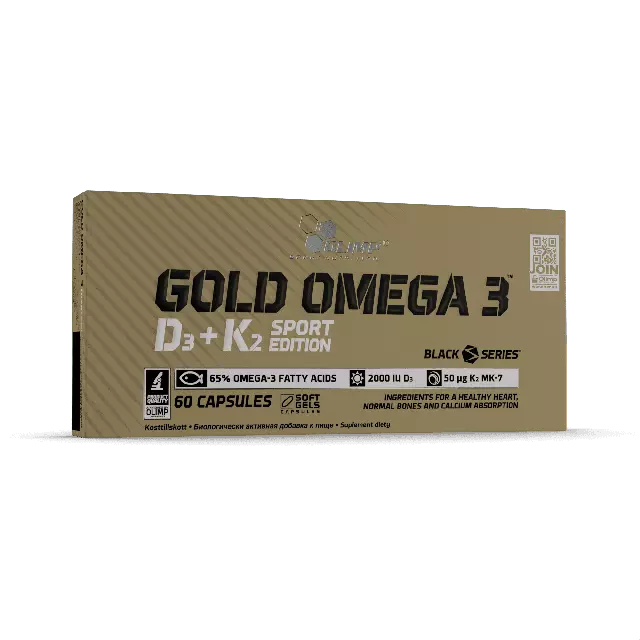 Olimp Gold Omega 3™ D3+K2 Sport Edition - dietary supplement in capsules with omega-3 fatty acids, supplemented with vitamins D3 and K2.